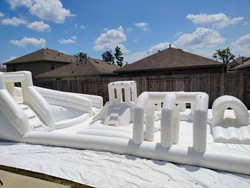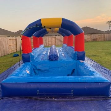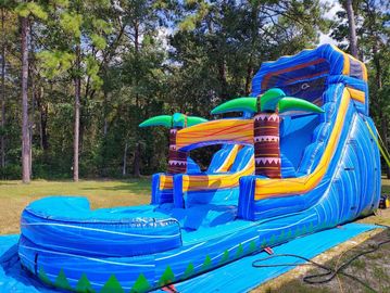 Waterpark for ages 5 and under. Features a waterslide, mini pool, and multiple splash pad areas.